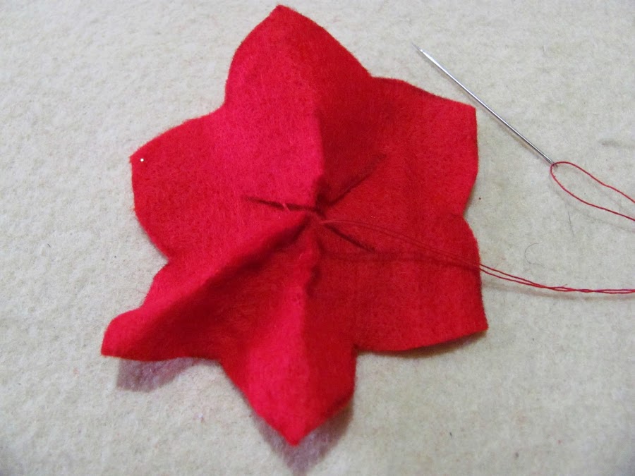 4.- Con hilo verde, coser este corte, para que, al igual que las flores, la hojita tome volúmen.