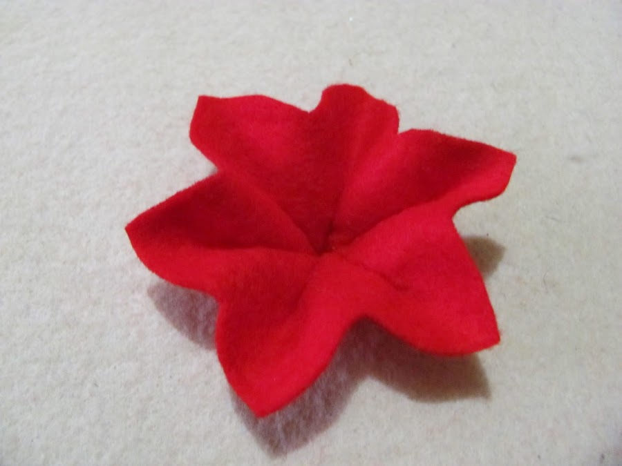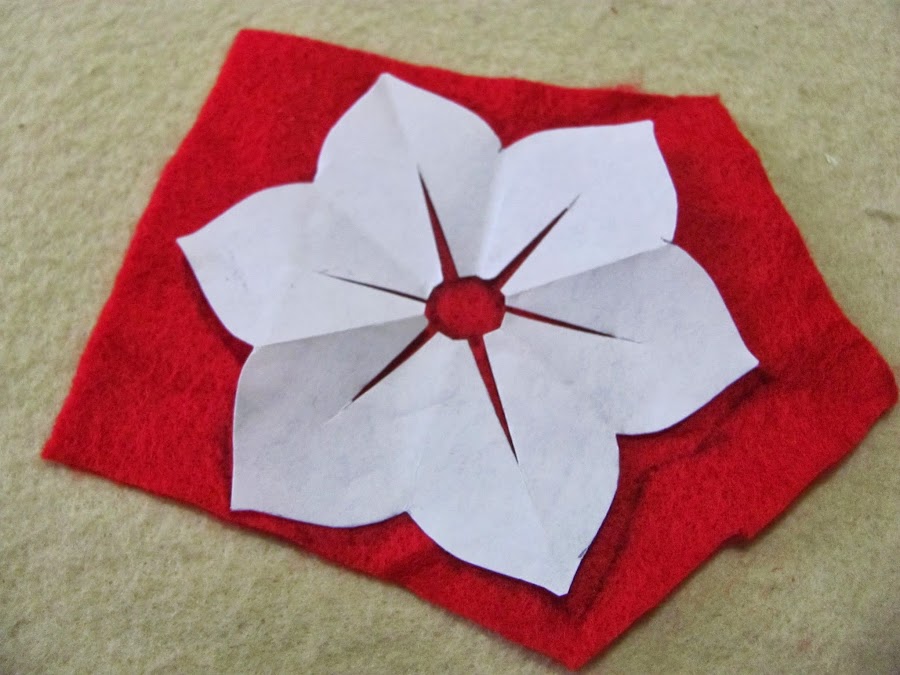 1.- Empezar por dibujar el molde de la flor en la tela de fieltro que elegimos. En mi caso, corte 2 flores.