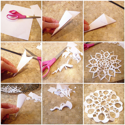 Yo recuerdo de pequeña haber hecho en el colegio, con la ayuda de un folio y unas tijeras, bonitos diseños con pequeños cortes en el papel, como este que os muestro.