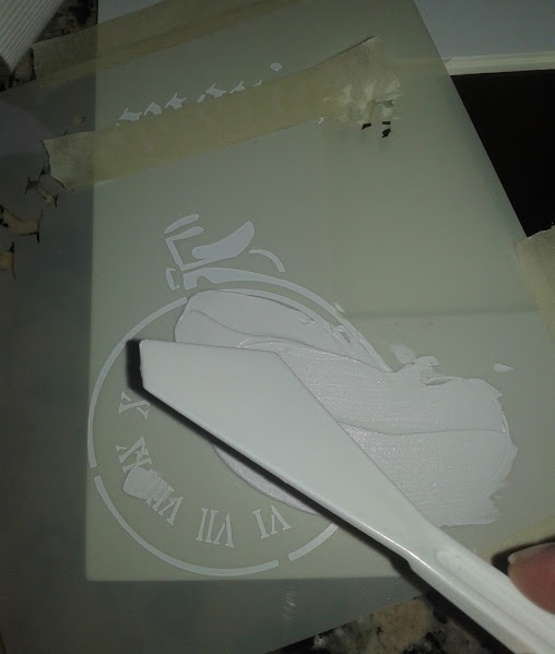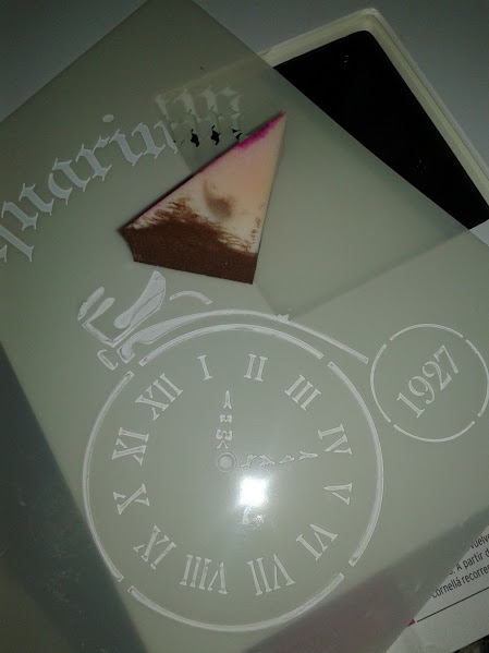 Una vez secos los relieves , puse de nuevo la plantilla y con una esponja los pinte en marrón