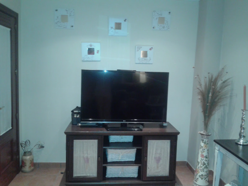 a ver si colgaba la tele, no quise poner nunca nada y viendo que la tele no se cuelga, pues nada a colgar cuadros.