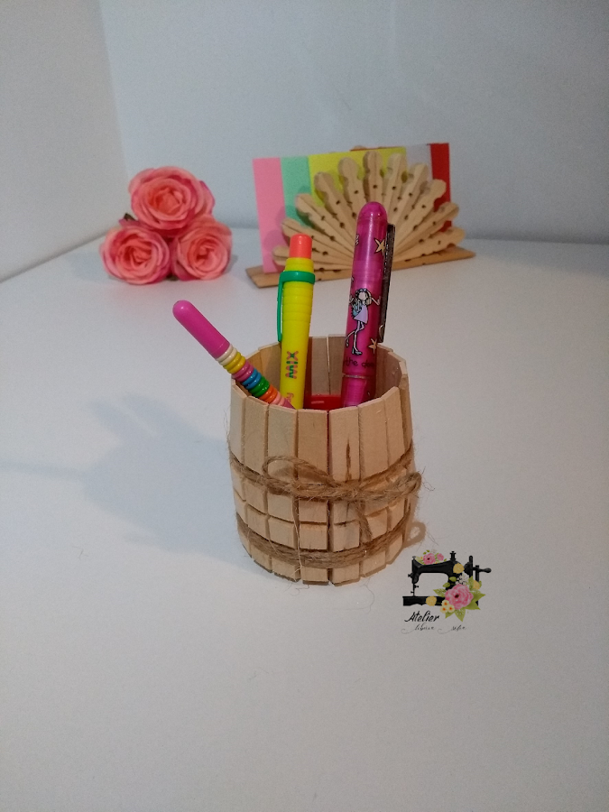 y así queda el resultado, es muy fácil de hacer y queda un regalo muy original, seguro que los peques se divierten creando objetos con materiales tan simples como son las pinzas de tender y un yogur.