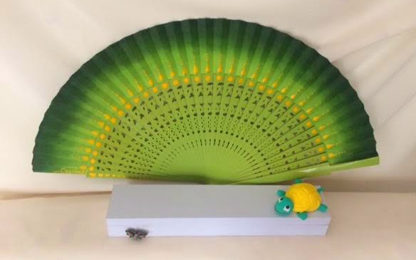 caja de abanico totalmente blanca para que resalte mas la tortuguita modelada,en tono verdoso y amarillo