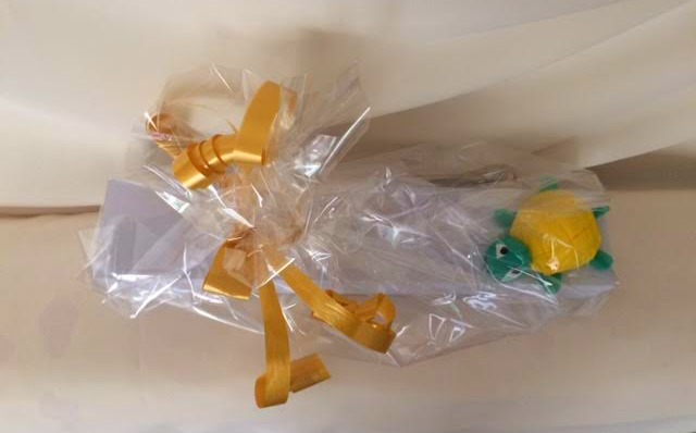 Un adorno sencillo en una caja blanca hace que luzcan tanto la caja como la tortuguita