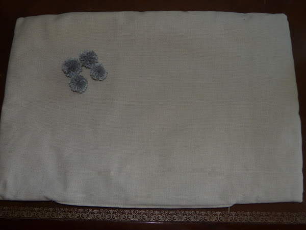 Para terminar, he rematado el almohadón en sus cuatro esquinas con los pompones.