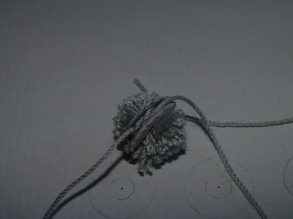 Por último, pasamos una hebra de lana alrededor y lo atamos bien fuerte. Después, quitamos los cartones y si es necesario, terminamos de redondear e igualar los pompones con una tijera.