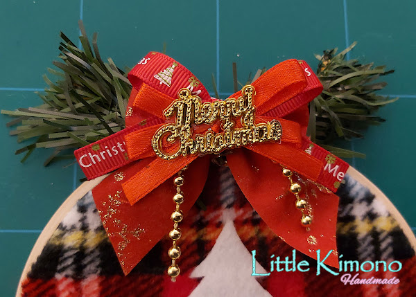 4. Para darle un toque más navideño, decidí reciclar las ramos de un arbolito navideño que ya no usamos, unas cintas rojas que me han sobrado de otros trabajos y que guardo "por si acaso"^^, algún adorno navideño...