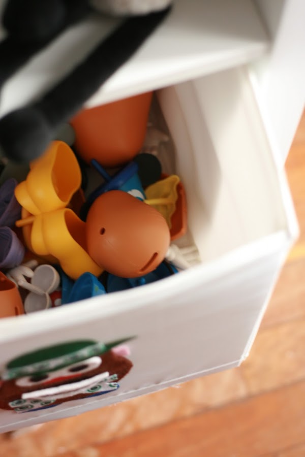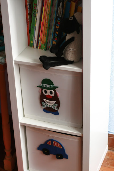 Como veis es muy sencillo de realizar y le da un punto alegre a la habitación de los niños. Ellos saben qué juguetes tienen que guardar en las cajas y además nos queda decorativo.