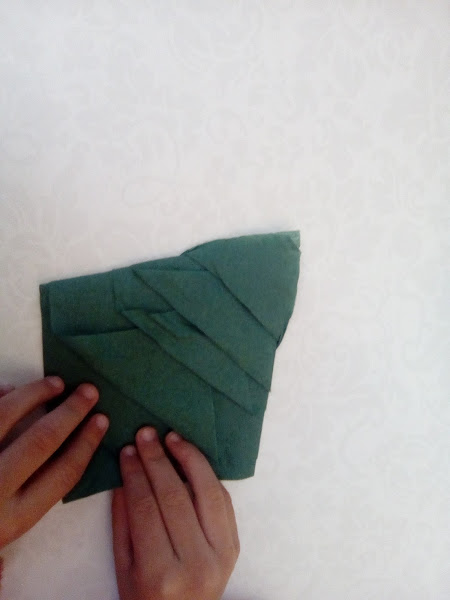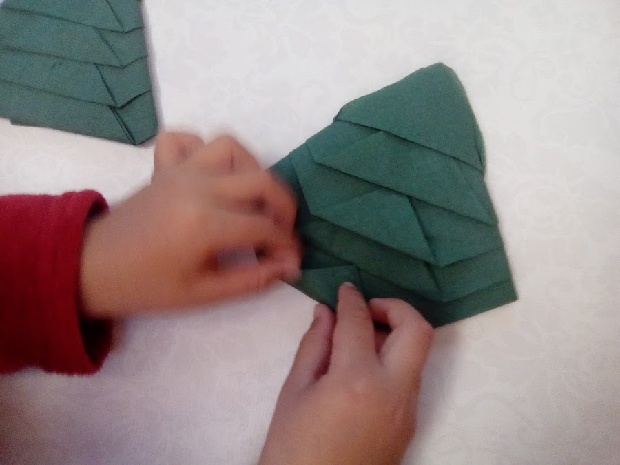 Por ejemplo la semana pasada (para noche buena, como cada año, la cena fué en casa de los abuelos, así que para mantener a los niños entretenidos, con un tutorial para doblar servilletas, nos pusimos manos a la obra (se puede hacer con servilletas de tela o papel)