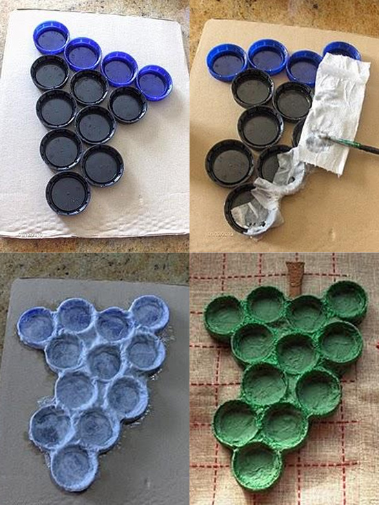 Si nos da tiempo, prepararemos algo similar a éste racimo de uvas, muy fácil de hacer, sólo hay que intentar reunir todas las tapitas necesarias para ello (aunque sólo sean 2 para los peques)