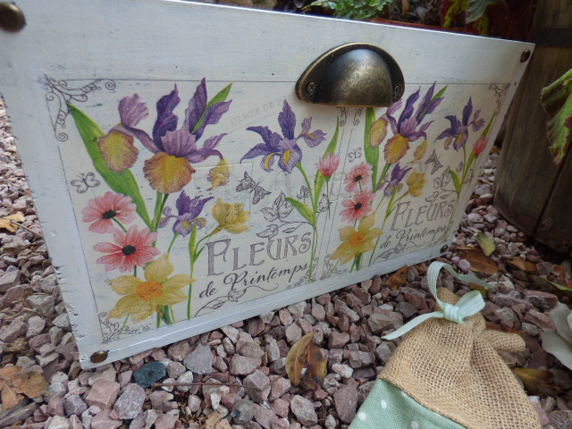 Fui poniendo con cola de decoupage los cuartos de la servilleta por todas las caras del cajón