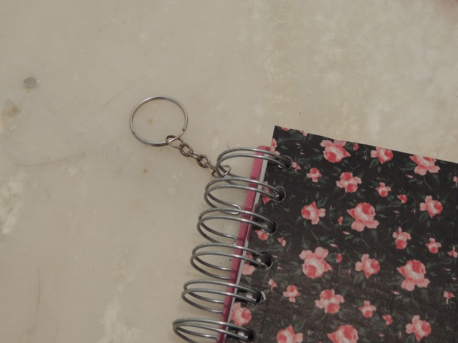 Una vez que estén los dos lado forrados, ya podemos pasar la tapa por los espirales de la agenda.