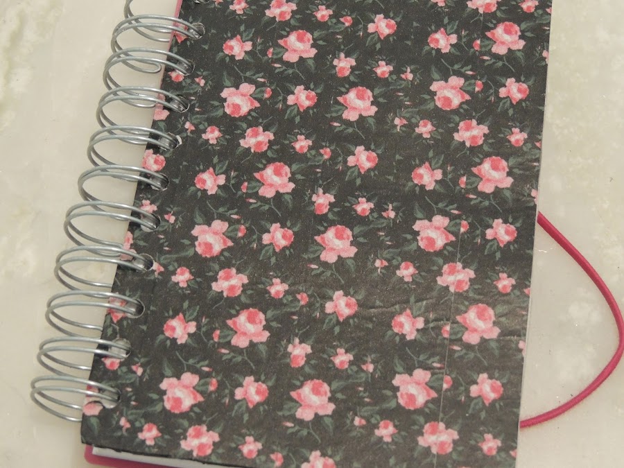 Una vez que estén los dos lado forrados, ya podemos pasar la tapa por los espirales de la agenda.