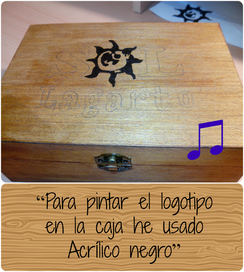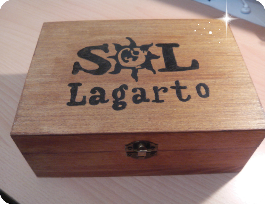 Hoy quiero enseñaros una cajita que he preparado para un compañero de trabajo que se va y quería que se llevara un recuerdo. Está en un grupo de Música, ?Sol Lagarto? (Os recomiendo que lo escuchéis, a mí personalmente me encantan sus canciones) y quería hacerle un detalle relacionado con el logotipo de su grupo.