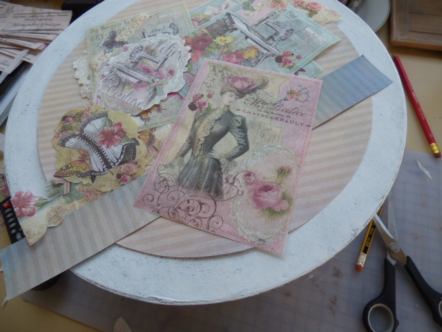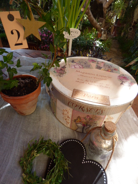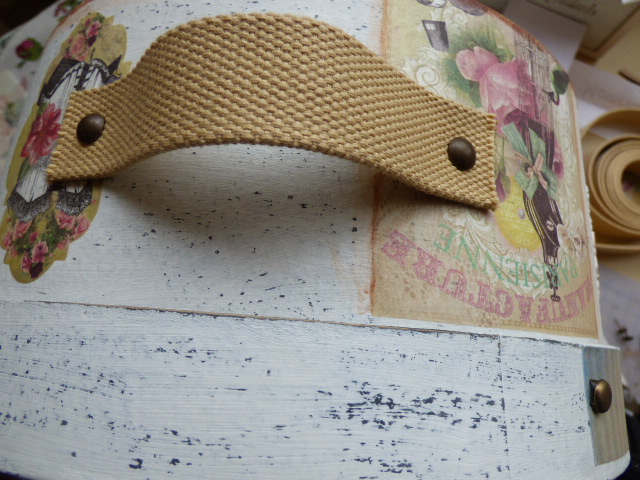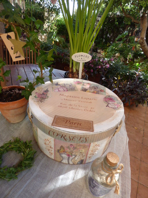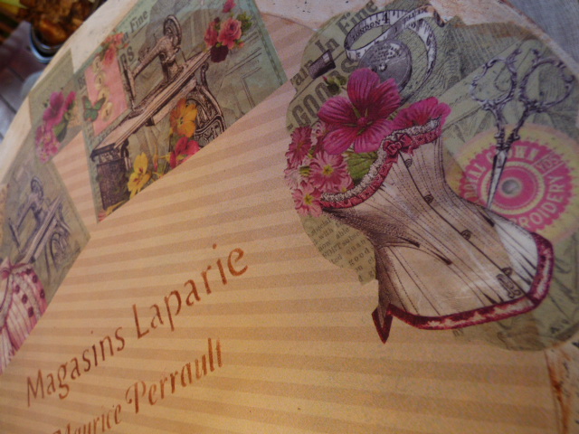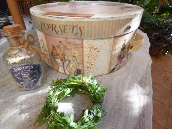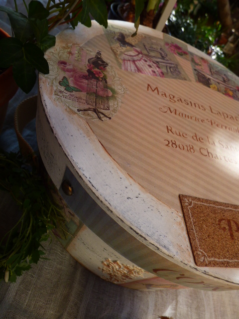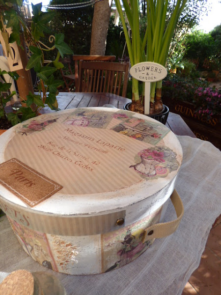 Qué ganas tenía de decorar una caja redonda de papel maché¡ Por el material en sí y porque parecen cajas de otra época. Me ha encantado trabajar sobre el cartón, qué agradable y agradecido es.
