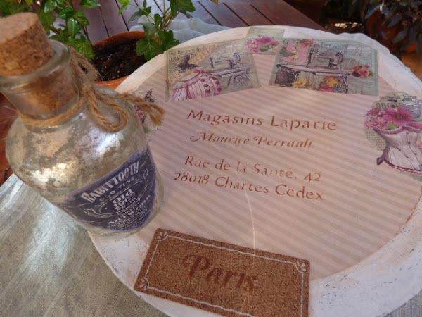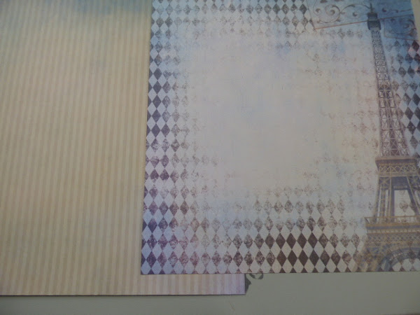Este papel de scrap, por un lado tiene la Torre Eiffel y por el otro un fondo rayadito que es el que he utilizado