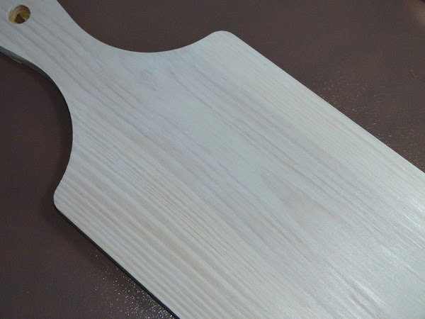 Coral, del Rincón de Coral, fue la merecidísima ganadora con unos preciosos azulejos de escayola que nos enamoraron a todas. En fin, que eligió telas... y vaya rachita llevo entre lanas y telas... y yo sin saber coger una aguja. Pero bueno, el caso es que sin aguja pero con tela, algo he hecho, con una tabla de cocina y Deco Lasur de Xylazel como base: