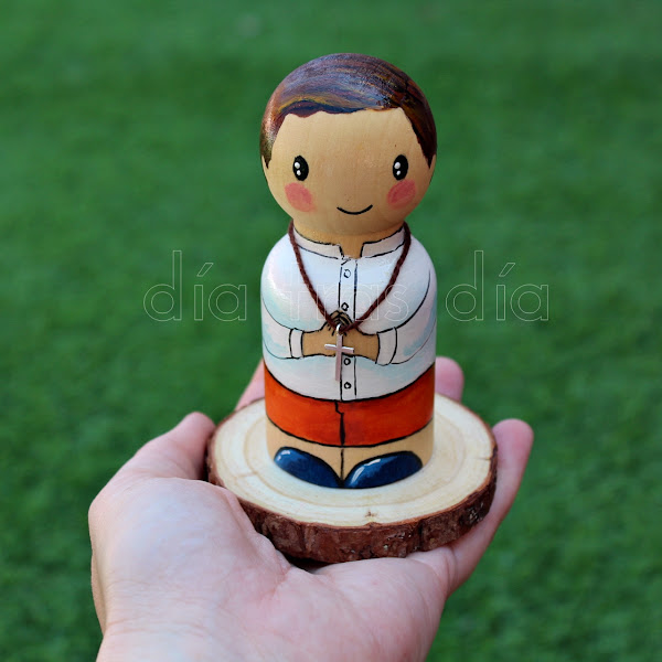 Y por aquel entonces Pilar, clienta fiel de Día tras Día desde hace ya muchos años, se puso en contacto conmigo para preguntarme si habría posibilidad de hacer algo similar pero para una Primera Comunión, sustituyendo los novios por un niño de Comunión para decorar su tarta. Obviamente le dije que sí. Es más, me pareció que era una idea muy bonita y original, así que acepté encantada el reto.