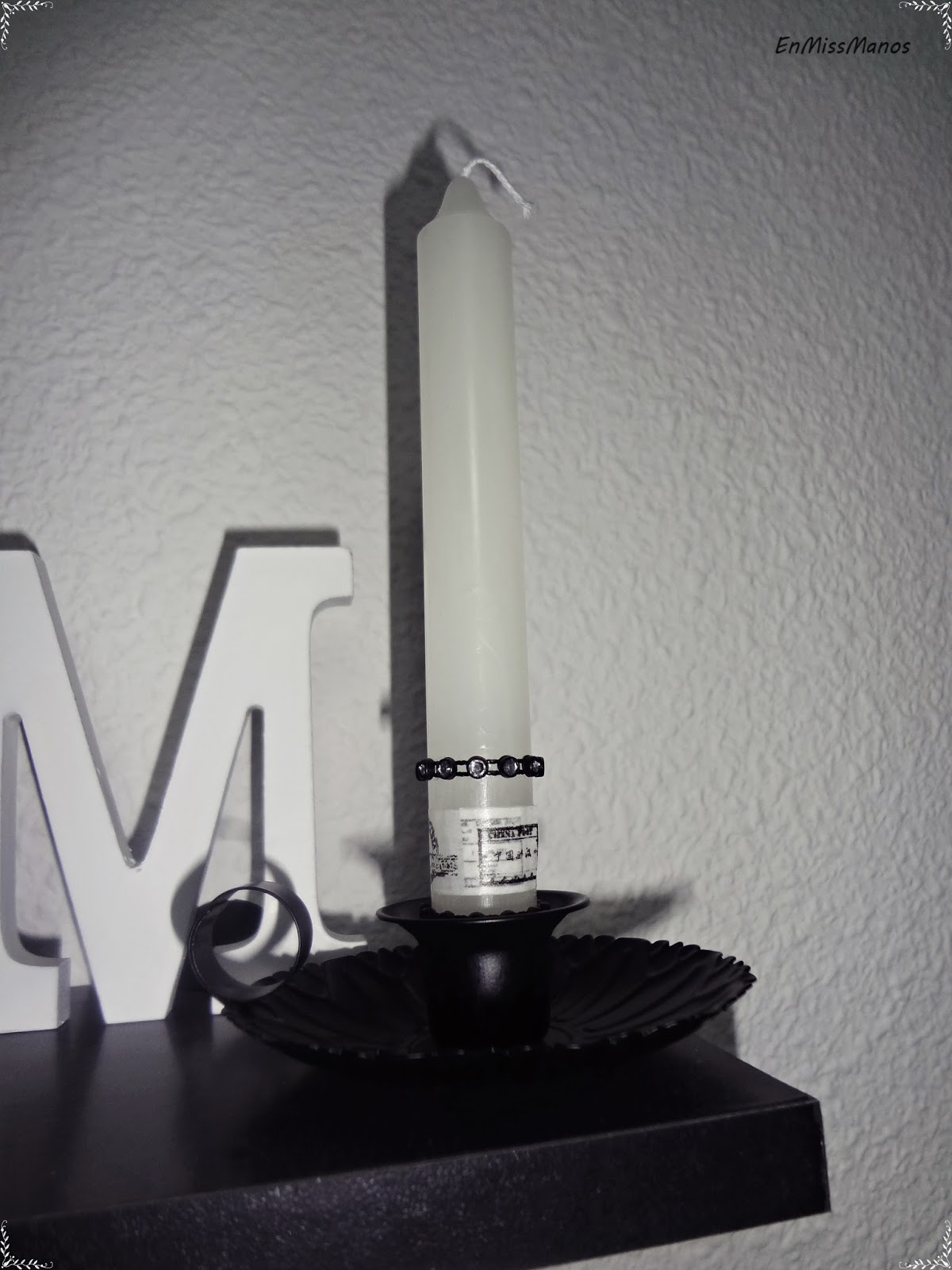 El portavelas de ésta decorada con washi tape y strass lo compré en Tiger.