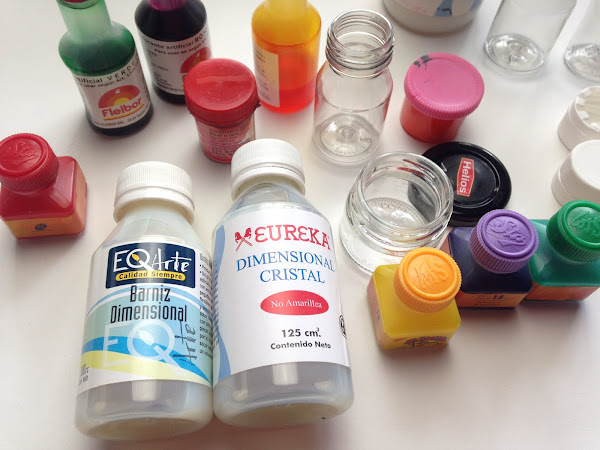 Para comenzar se trata de mezclar la base que es el Barniz Dimensional con los Colorantes.