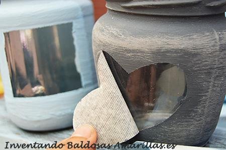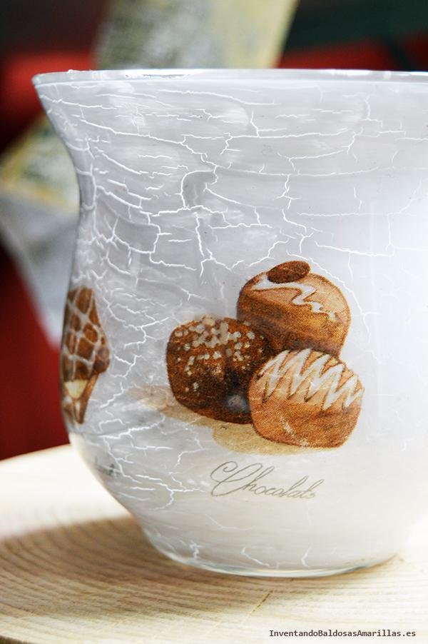 Otra forma de decorar nuestros botes de cristal es la pintura de tiza. La podemos hacer casera mezclando pintura acrílica, cola de carpintero, yeso y agua caliente.