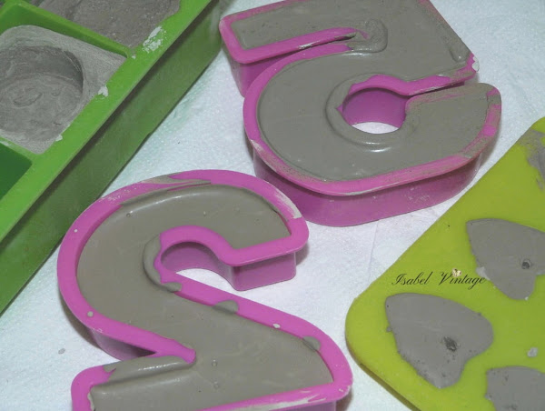 Lo que no sé es por qué con el mortero han quedado esos agujeritos de aire, a pesar de haber movido bien el molde, dándole golpecitos contra la mesa una vez relleno (otro tip) para evitar eso precisamente. En cualquier caso me parece que quedan preciosos estos números de cemento con todas sus imperfecciones.