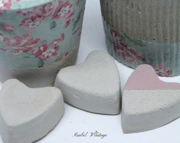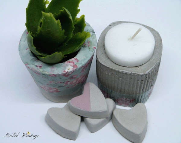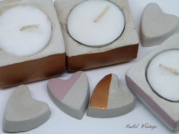Número, portavelas y corazones hechos con cemento y moldes de silicona
