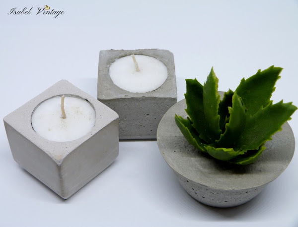 Os enseño el resultado de esas pruebas con cemento en moldes de silicona. Al principio hubo algún número que otro roto, portavelas un poco amorfos como éstos primeros que vais a ver jajajaja pero os puedo asegurar que es divertidísimo jugar con el cemento.