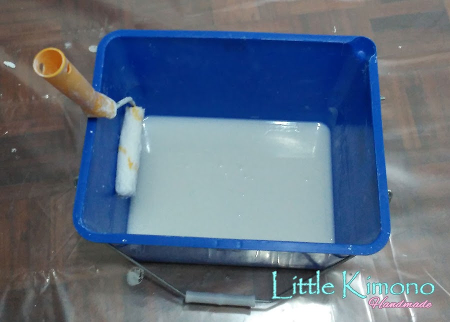 4. Mezclamos el sobre de la pasta adhesiva que trae el pedido es a base de fécula de patata por lo que es menos contaminate que otros productos del mercado para este tipo de decoración.
