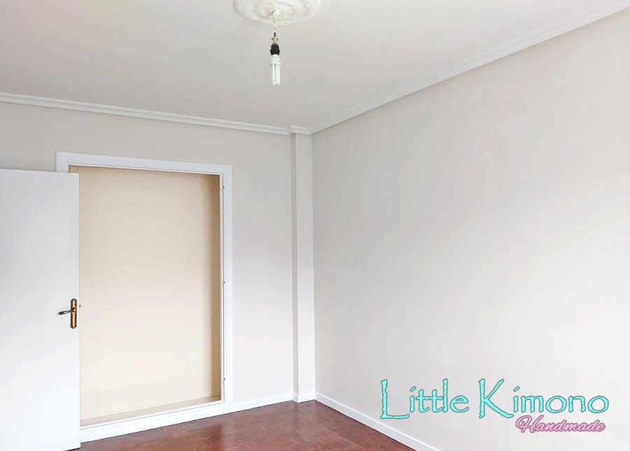 3. Damos 2 manos de pintura a las paredes, el color que hemos elegido es acorde con la palera del papel, es un color que con la luz directa del sol se ve un pelín salmón y si no hay luz directa es más bien un tono "arena" me encanta!