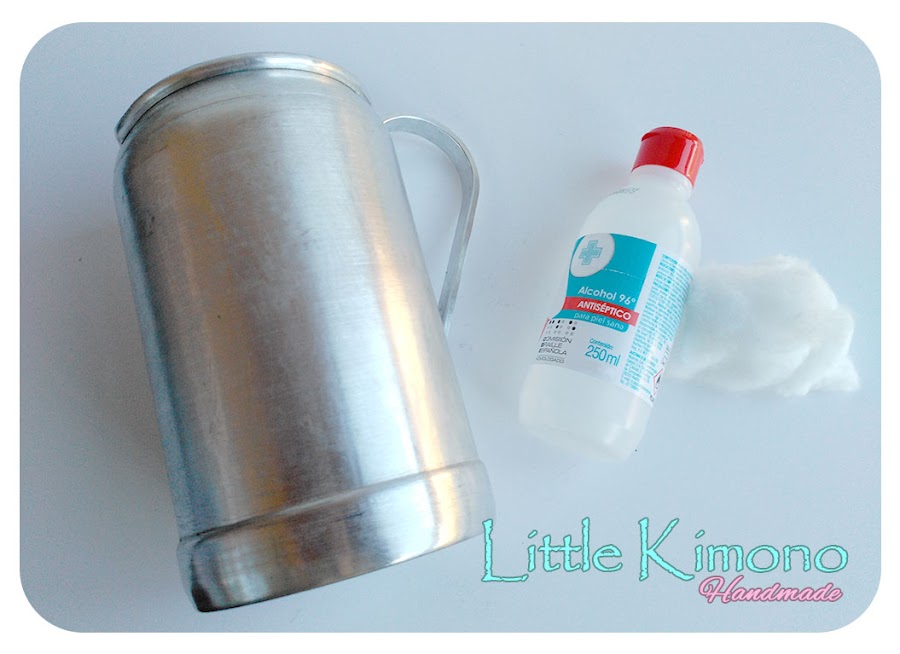 ... y la colocamos en nuestro soporte elegido, en mi caso la jarra de aluminio ^^ presionando firmemente para que se adhiera bien.