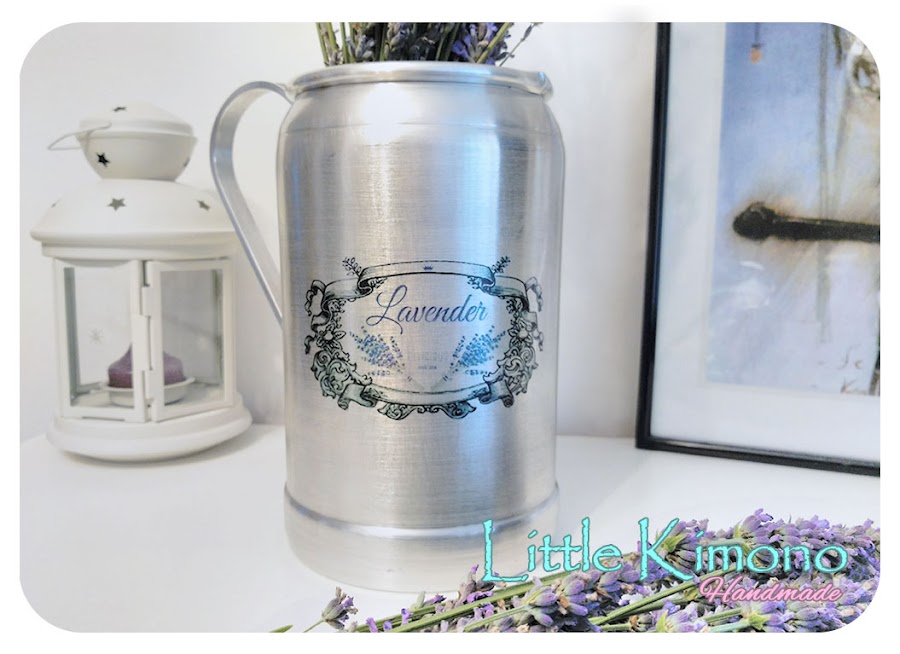 Os cuento un poco, el lunes estaba yo solita en casa haciendo limpieza y encontré una jarra de aluminio de esas antiguas que me había traído del pueblo para tunearla un poco y dije ala! pues cuando vaya al pueblo de paso cojo un poco de lavanda para darle un poco de vidilla... mi sorpresa fue que al día siguiente aparece mi marido con un ramo de lavanda en la mano y me dice con una sonrisa ^^ "por si lo necesitas para hacer alguna entrada del blog"...
