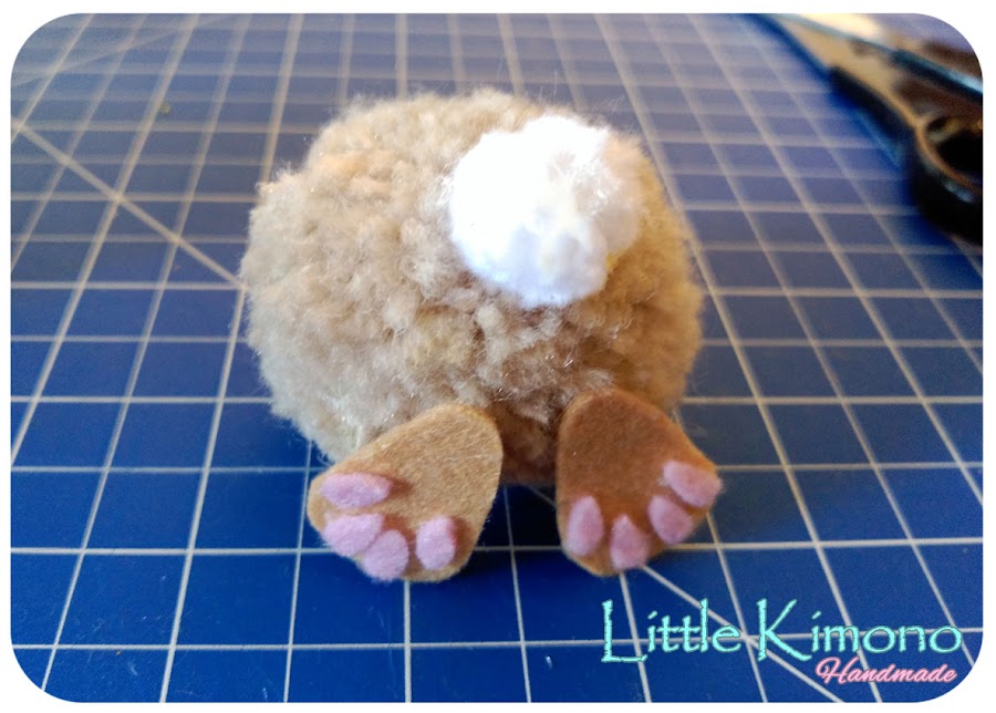 5. Bien! toca decorarlo a nuestro gusto, como ya os conté antes estamos de temporada "Primavera-Pascual"^^ así que vamos con la decoración del conejito. Sólo hay que hacer las patitas en fieltro, yo las hice a ojo, como veis no tiene ningún misterio.
