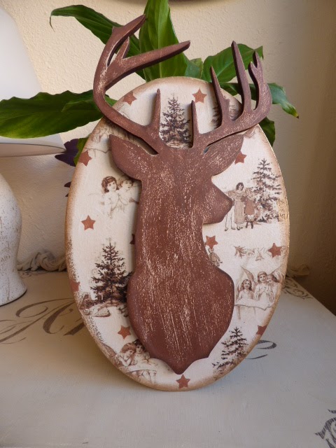 Soporte cabeza de ciervo y óvalo de 30 cm, eso es lo que tenía en casa el, así que los uní y bien juntitos que han quedado
