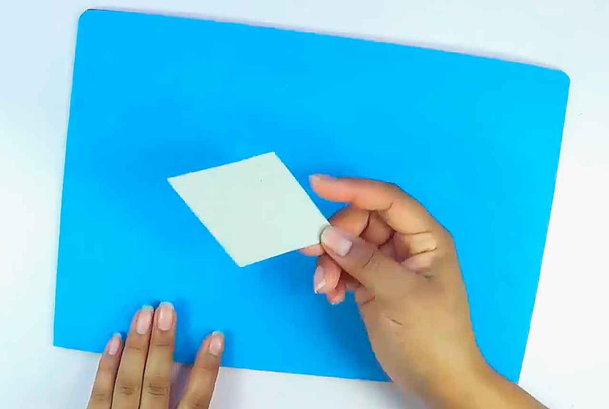 Marcar un rombo en una cartulina de 5 x 3 cm y recórtalo.