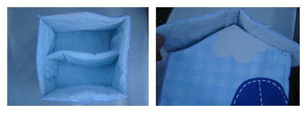 En las fotos os enseño un ejemplo de la casita de tela que se ha convertido en el guarda calcetines de mi hijo.