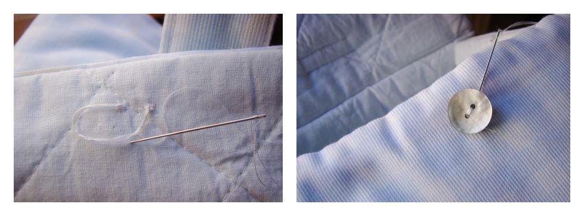 5. Cosemos las zonas que nos han quedado sin coser, con pequeñas puntadas a mano: