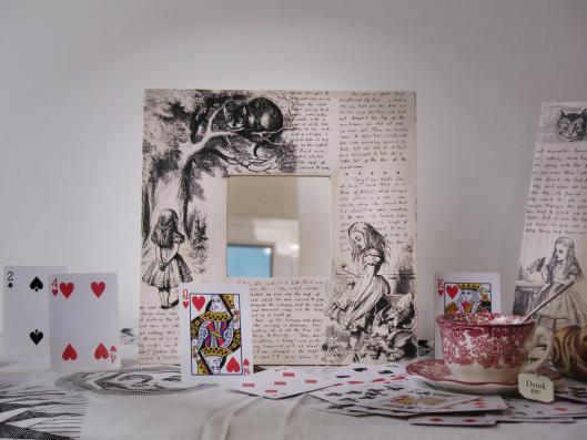 Si somos aficionadas al Scrap podemos usar papel, siluetas y etiquetas para decorar nuestro espejo. El único límite es nuestra imaginación. Sólo tenemos que ir pegando y combinando elementos: