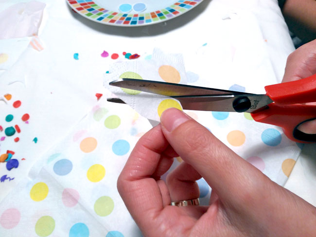 Elige una servilleta de papel. Hay muchas con motivos muy monos. Tienes que quitar la primera capa de papel, y te quedas con la que está impresa.