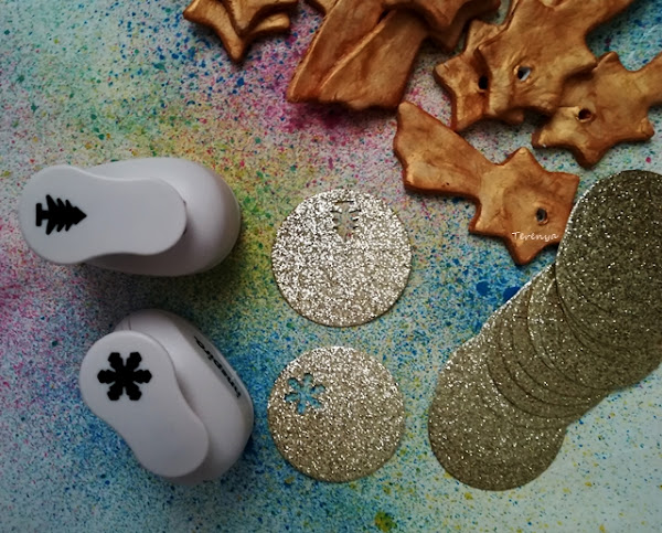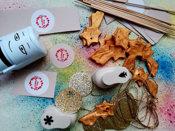 Así que después de recibir mi precioso sello, cogí pasta de modelar y con un molde de galletas, hice muchas estrellas fugaces o estrellas de los reyes magos que luego, una vez secas, pinté de color dorado.