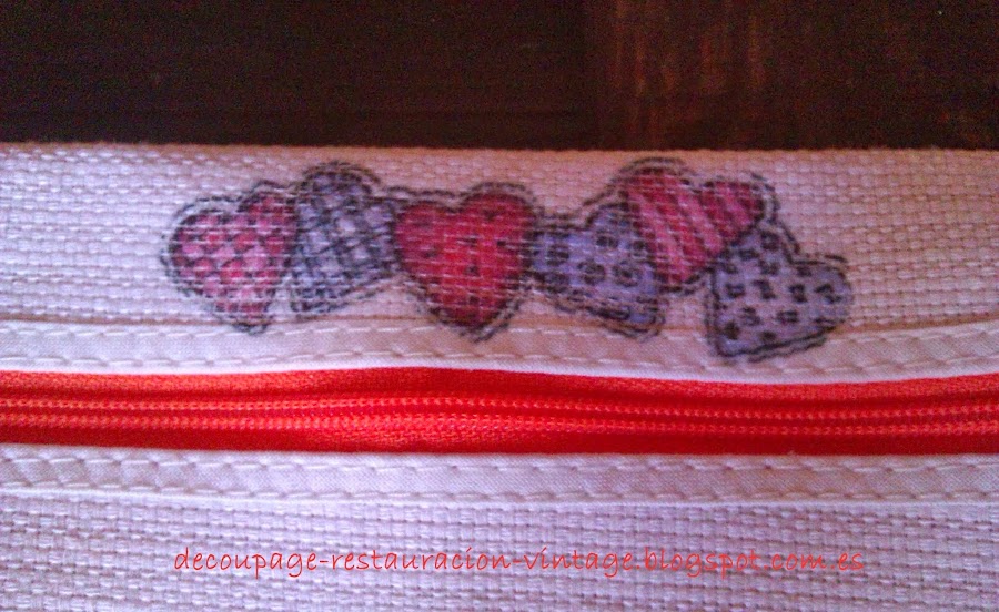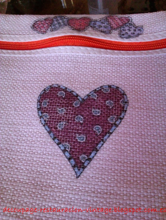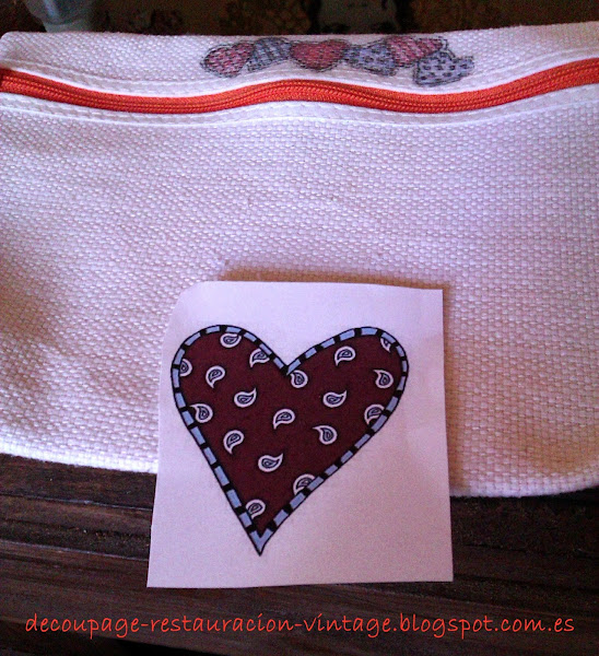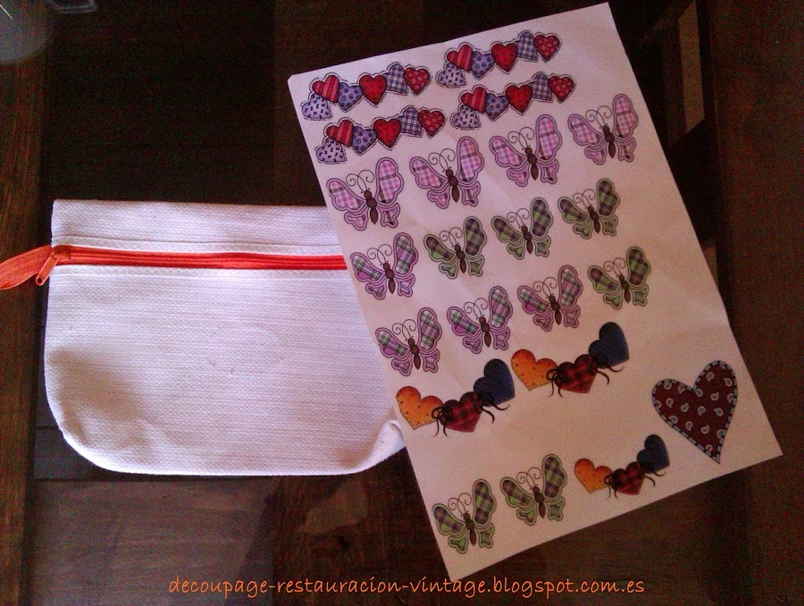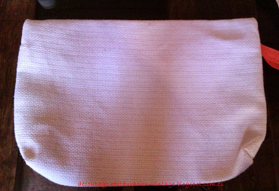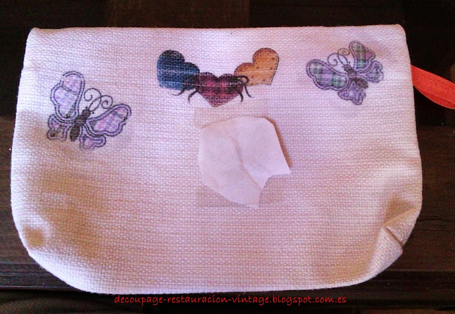 Hoy os enseño un neceser que le he hecho lo mismo que a la bolsa. Me lo regalaron con una marca de cremas. Le descosí la etiqueta y se quedó pidiendo que lo decorara un poco. Os enseño la evolución de como he ido transfiriéndole las imágenes para darle un cambio.