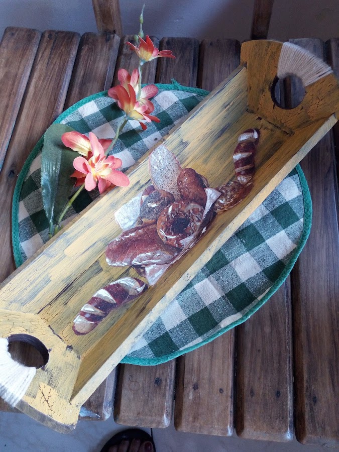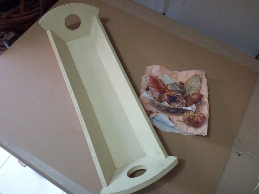 Bien pues aquí les cuento el paso a paso de como he realizado esta panera. Hace tiempo que no aplico la técnica del decoupage y me pareció que le venia genial a la panera.