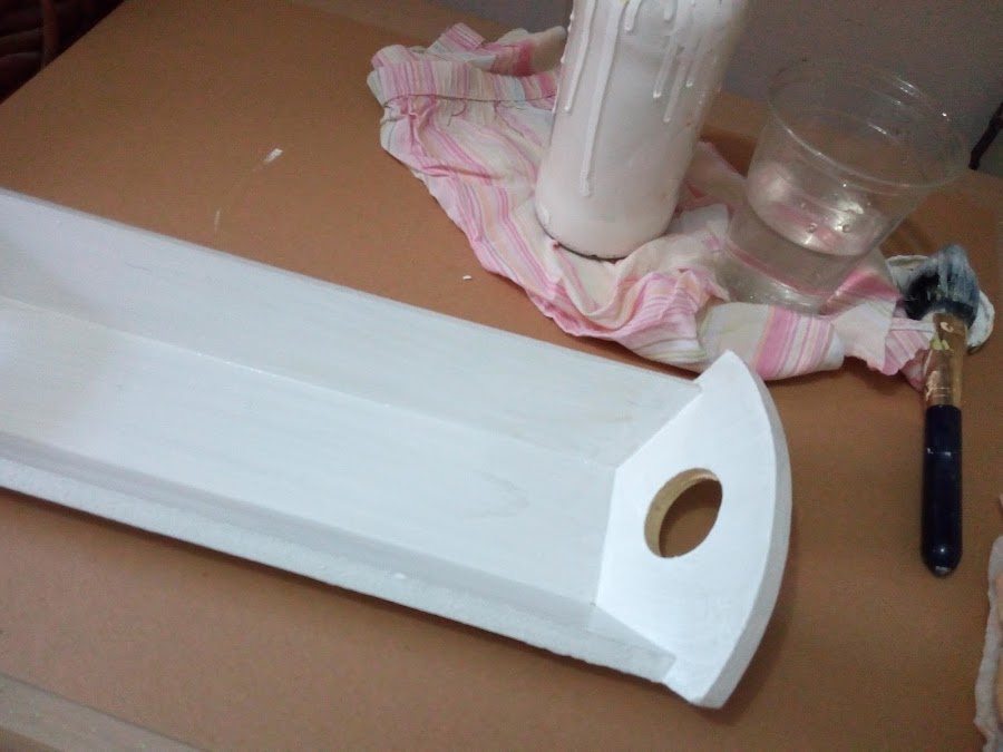 Hay que dar una capa pintura de base acrílica en color claro, utilice el blanco. Espere a secar y pase lija para madera fina así no se estropea la superficie. Debe quedar bien prolijo para realizar cualquier trabajo en ella.