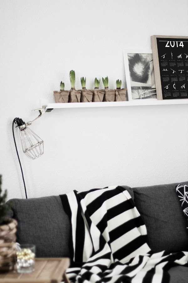 Me encantan estos soportes detras del sofa para colocar cuadros o adornos...así podemos variar nuestra decoración fácilmente sin necesidad de agujerear la pared cada vez...y estos mini bulbos quedan genial, ¿verdad?