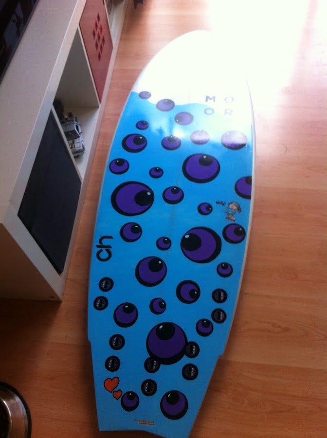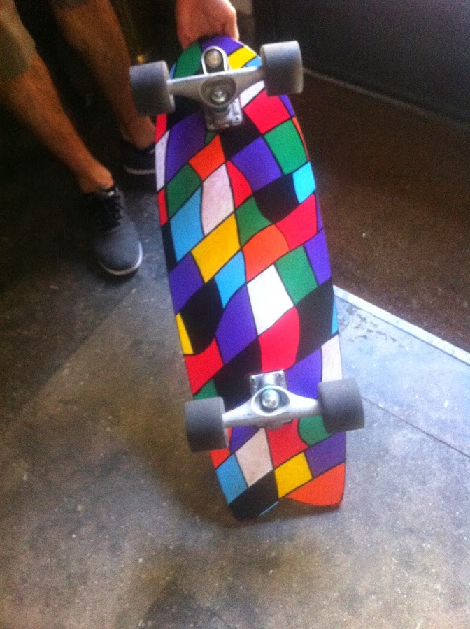 También personalizamos un skate cuya tabla era un poco "fea". Le dimos brillo y personalidad con estos cuadraditos irregulares multicolor: