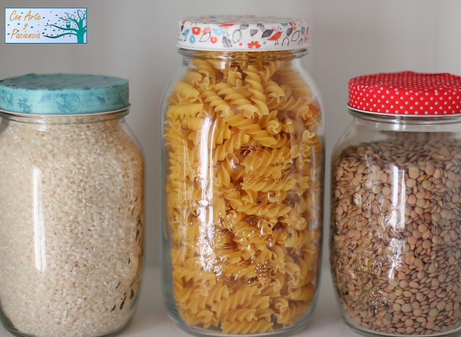 En este post os enseño a decorar tapas para guardar vuestros arroces y pastas y que luzcan en vuestra alacena, en lugar de los clásicos envases que tenemos siempre guardados en el mueble.