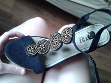 Sandalias de Okeisi de hace un par de años que ya estaban hechas polvo. Recosidas y desgastadas. Directas a la basura MENOS la decoración de cuentas, que me daba pena tirarla.Por otro lado, camiseta sin mangas que me estaba muy grande y metí guapamente de los hombros, de forma que me quedó fatal la costura (fui baja y no quise descoser el cuello para meter el hombro en condiciones). Tan fatal que no me ponía la camiseta porque me avergonzaba del cutrerío de las costuras.