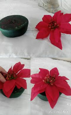He pintado todo el veloncito de verde Navidad y al secar le coloqué encima una flor de Pascua artificial (también reciclada)