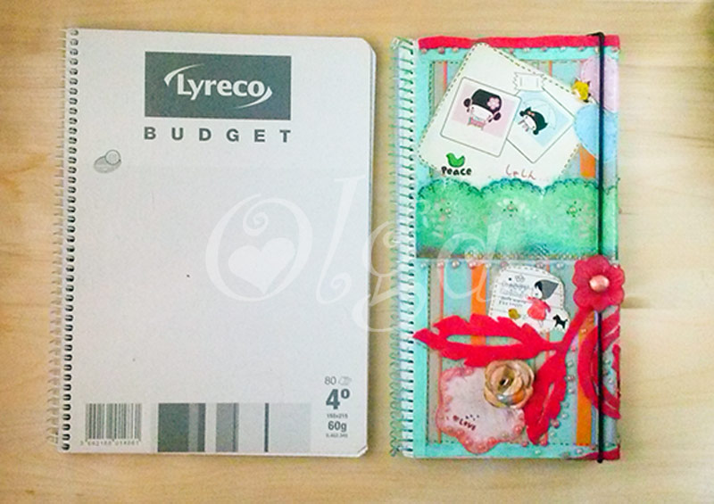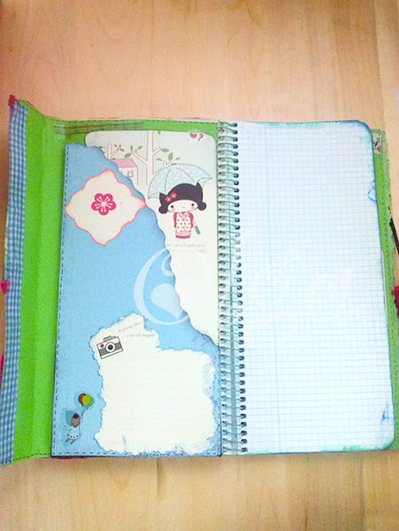 Partiendo de una libreta o cuaderno bastante simple y cutrillo...todo hay que decirlo, me hice esta libretita en formato alargado que me cabe fenomenal en el bolso!