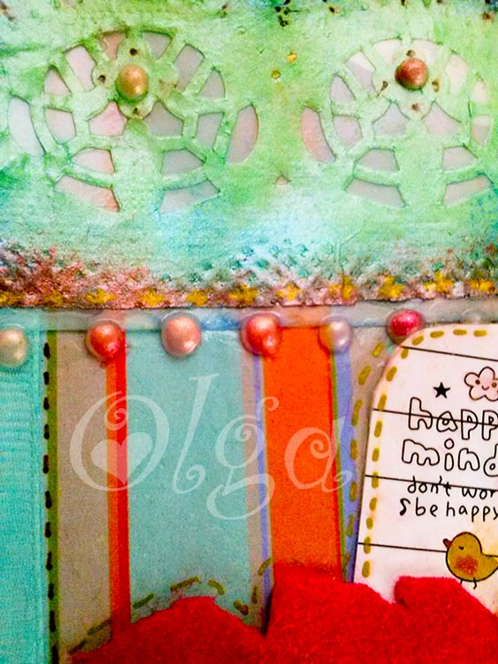 El papel en este detalle está cortado con tijeras de formas ( tijeras baratitas , no os creáis, de las del bazar chino) , también envejecidas con tinta azul en los bordes para dar algo de volumen.